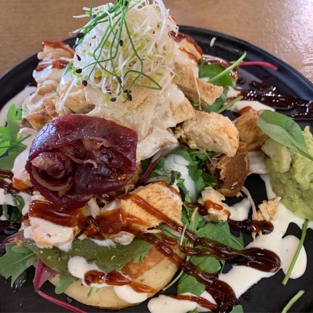 The second breakfast place and my favourite place on this trip was Mr Stacks serving vegan pancakes and tea. They all looked so good, we ordered the sweet and savoury pancakes to share. They are UNBELIEVABLE. We had the classic stack (which had candy floss on the top) and the bbq Chicken. If you only go to one place go here. It gets 5/5 from us.