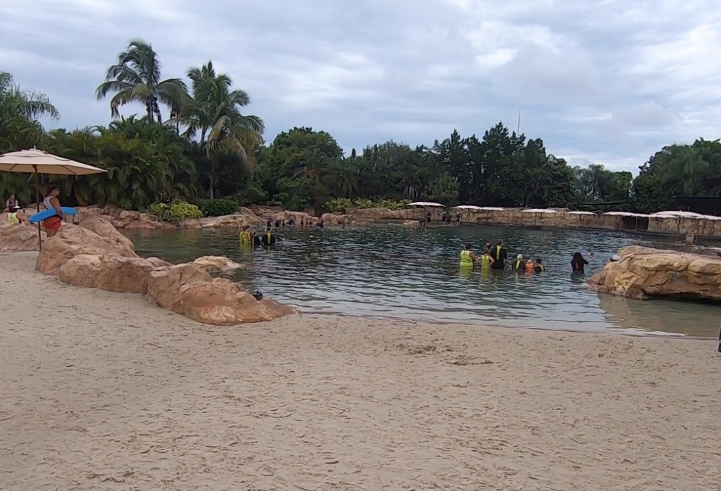 To make the most of Discovery Cove you need to get there early (7.00am for admission at 7.30am), this allows you to book an early slot to swim with the dolphins (if you have booked for this activity), get a sun lounger – although there are plenty and make the most of the unlimited complimentary refreshments and beautiful setting. Apart from alcohol, extra activities and the cabanas/daybeds everything is included with your booking and that does include towels and lockers.